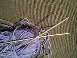 Am Dienstag habe ich eine neue linke Masche gelernt, die musste ich Oma zeigen.