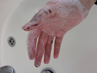 Die ganze Farbe von den Händen gewaschen. Ja ich habe auch noch etwas braun gestrichen.