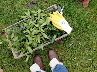 Den Kranz gebunden und dekoriert und gleich aufgehangen.