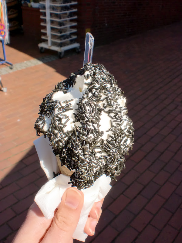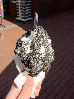 Ein dänisches Eis mit Lakritzstreuseln gegessen.