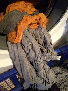 Wäsche aus der Maschine geholt.