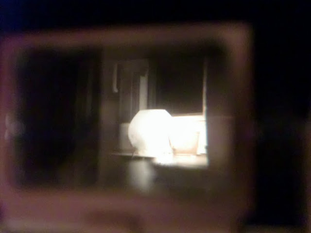 Hier mal der Blick in den Sucher. Falls ihr es nicht gleich erkennt habe ich noch eine Aufnahme von dem Motiv, mit meiner Digitalkamera gemacht. Vielleicht könnt ihr erkennen, dass das Bild im Sucher spiegelverkehrt erscheint. Das macht es besonders schwer in hochkant zu fotografiert. Was ich noch immer nicht kann, da man sich dabei vom Motiv wegdrehen muss um es in den Sucher zu bekommen. Kompliziert.