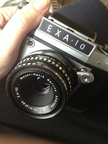 Im Januar habe ich auf einem Flohmarkt eine alte Spiegelreflexkamera gefunden und mitgenommen. Gut das es eine Spiegelreflexkamera ist, habe ich auch erst durchs Internet erfahren. Es ist eine Exa 1a aus den frühen 70ern. Sie ist sehr schön anzusehen, ich zeige sie auch immer ganz stolz her.
