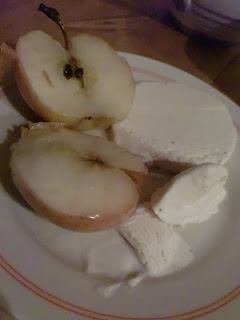 Nach dem ganzen Tag  in der Küche und nachdem das Gemüse den Ofen wieder frei gegeben hatte gab es zur Belohnung einen Bratapfel mit Vanilleeis.