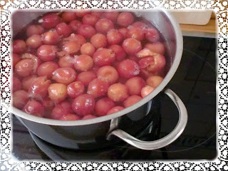 Ich habe leider zu viele Kirschen und zu wenig Gläser, also habe ich aus den restlichen Kirschen noch Kompott gekocht.