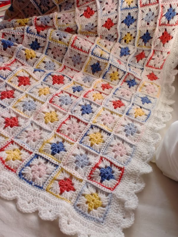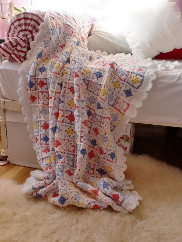 Aber eins kann ich euch sagen, gerade wenn es welche unter euch gibt, die irgendwo einige angefangene Grannys liegen haben, es lohnt sich weiter zu machen. Und ich überlege eine weitere Decke, ganz in weiß, mit einem anderen Muster, anzufangen. Aber erst mal habe ich noch zu tun.