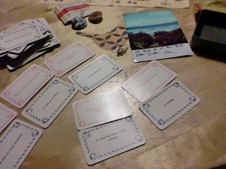Anfang November habe ich ein kleines Päckchen in meinem Briefkasten gefunden von Ellen. Sie hat, Anfang November, auf ihrem Blog gefragt, wer sich über ihren Flohmarktschatz freuen würde. Sie hatte ein uraltes Spiel gekauft: „Alles Lacht“ Das Kartenspiel besteht aus zwei verschieden Karten. Auf den roten Karten  stehen die Fragen und auf den blauen die Antworten. Nun zieht ein Spieler eine rote Frage Karte und liest die Frage vor. Der andere Spieler zieht eine blaue Karte und liest sie ebenfalls vor. Im besten Fall schmeißt man sich weg vor Lachen.