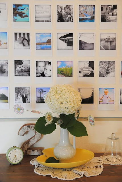 Ein Bilderrahmen voll mit Polaroids. Das brauche ich auch! Und weil meine Dad in 2 Wochen Geburtstag hat, werde ich ihm mein Probeexemplar schenken.