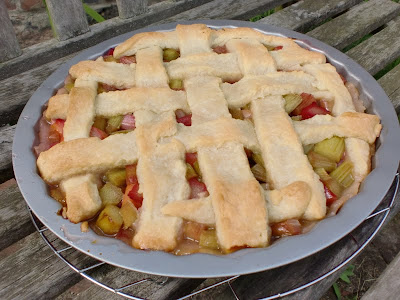 - 4 Äpfel oder 4 Birnen ( Für die Füllung kann man so gut wie alles verwenden. Ich habe für den Pie auf dem Foto 500g Rhabarber genommen.Dann habe ich allerdings den Zimt weggelassen. Man kann aber aus Äpfel und Brombeeren, Pfirsiche und Himbeeren oder was ihr mögt verwenden.)