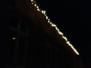 Dann musst die Lichterkette leider an die Dachrinne außen am Haus. In 4 Meter Höhe. Trotz Höhenangst und kein Verständnis meiner Seits, wo genau man die Knie hin tut, wenn man eine Leiter hoch und runter steigt, habe ich es versucht.