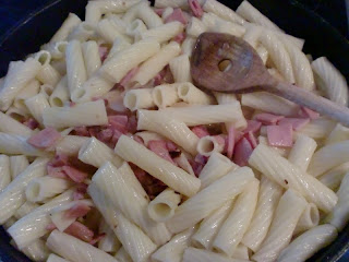 Nudeln kochen und abtropfen lassen. Eine Zwiebel klein schneiden. Wurst, Würstchen oder Bratenreste klein schneiden. Die Zwiebeln mit Öl in der Pfanne glasig anbraten und die Wurst dazu geben. Wenn alles schön angebraten ist, die Nudeln dazu geben, bis auch sie schön angebraten sind.